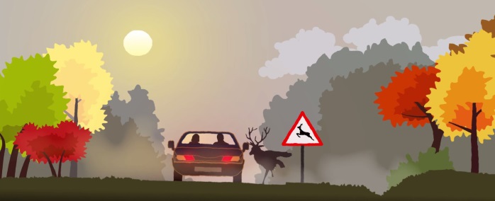 L’automne est une saison particulière qui présente certains risques pour la conduite : chaussée glissante, présence de feuilles mortes, soleil rasant, traversée de gibier.